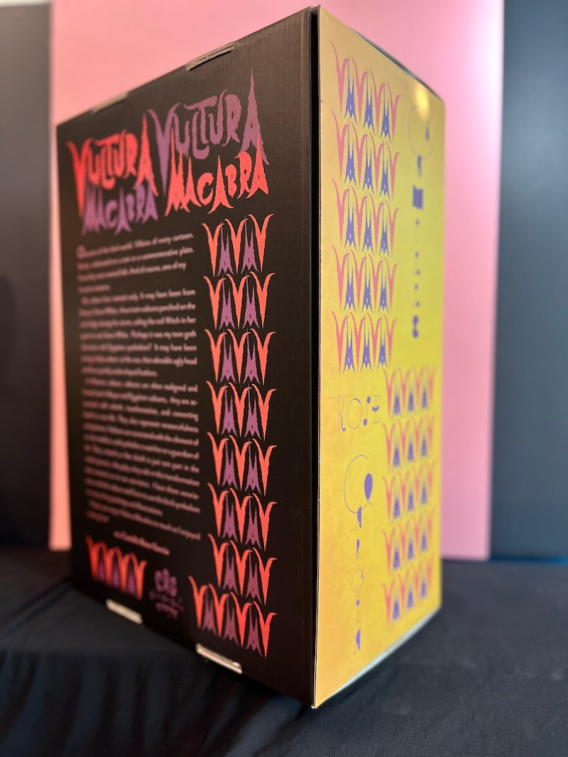 Why not get yourself a signed, custom glittered "Vulture Macabra" to spice things up around the place. The color way is "Arctic Melt", with an ice-blue custom glitter treatment for the fanciest and the freakiest of the scavenger birds.