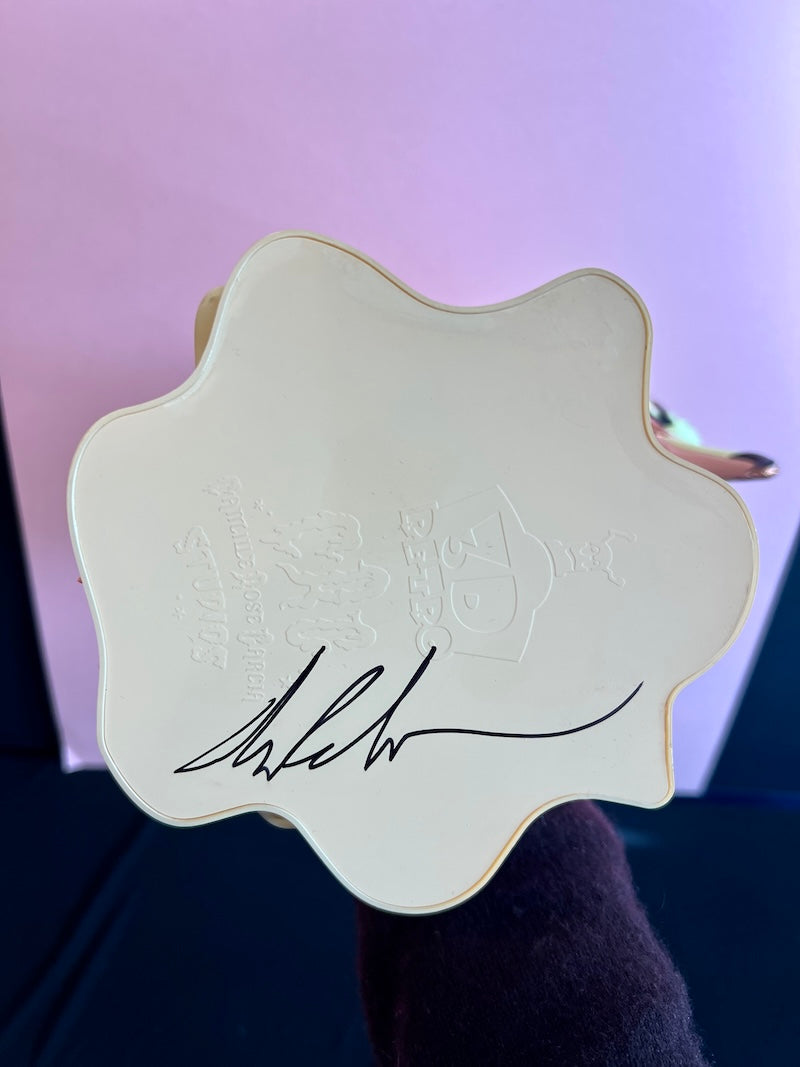 Measures 15" x 8" x 5", comes with custom box. Bird is signed on the bottom. Sass included.