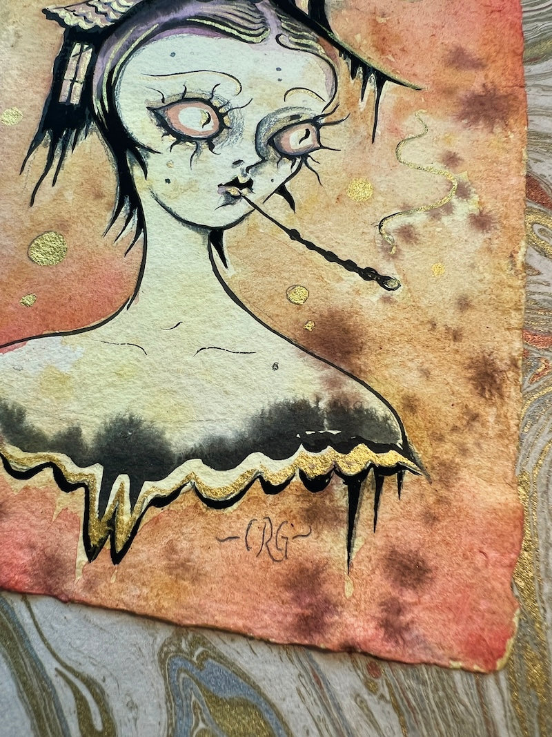 5.75" x 8" watercolor and ink on handmade paper. 2025.