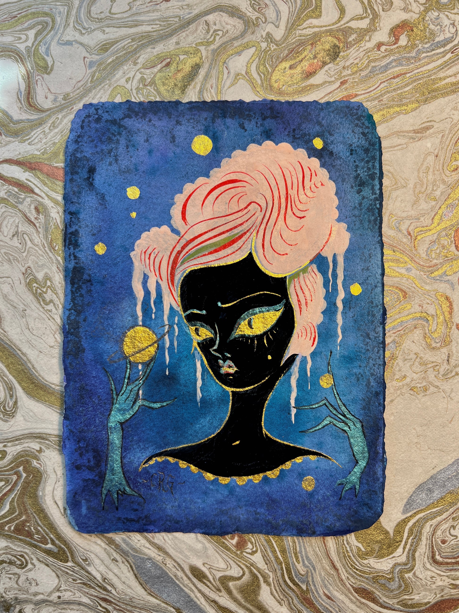 6" x 8" watercolor and ink on handmade paper. 2025.